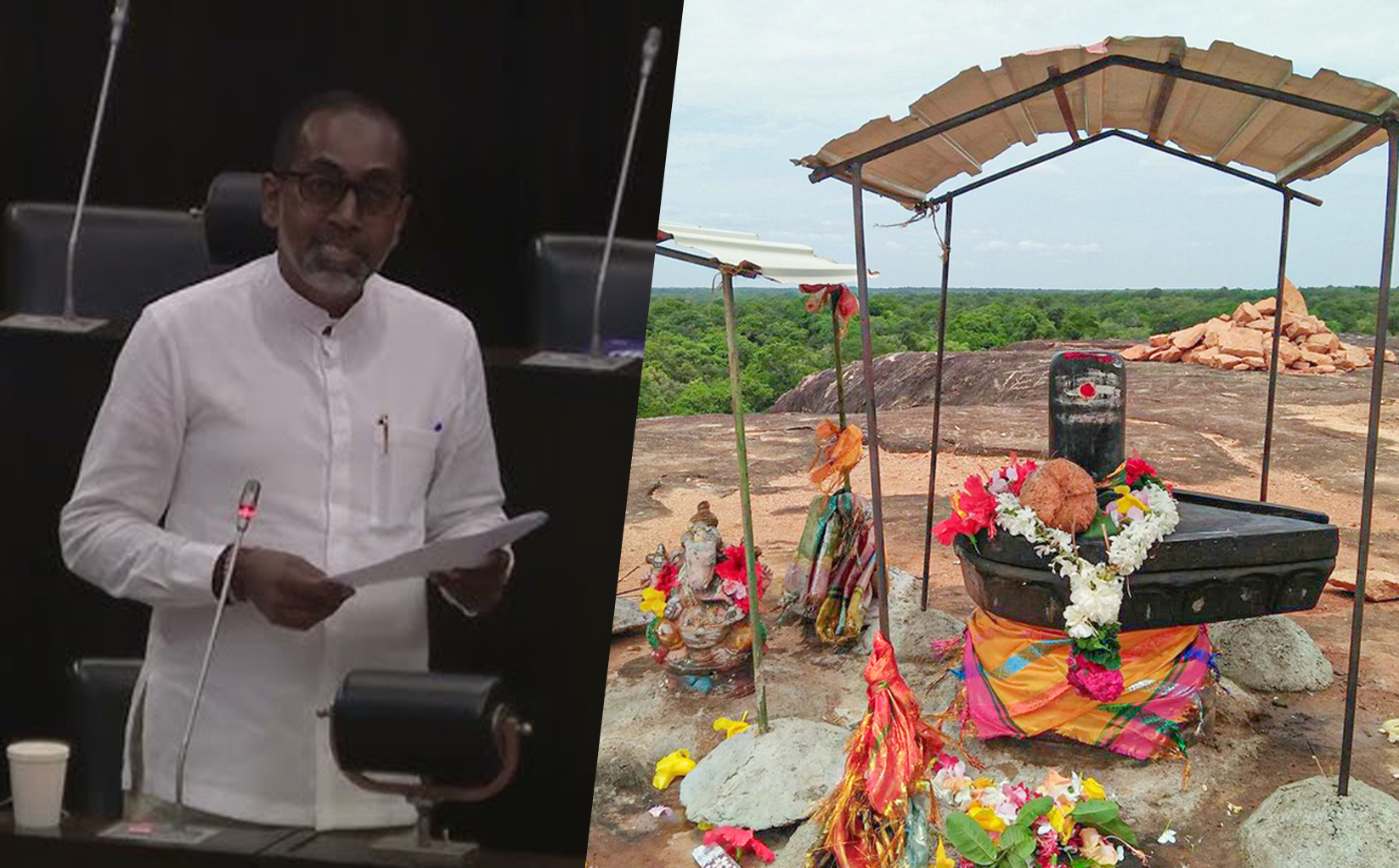கடந்த வியாழக்கிழமை (09.04.2026) சிறிலங்கா நாடாளுமன்றத்தில் நடைபெற்ற விவாதத்தின் போது உரையாற்றிய சிறிலங்கா பௌத்தசாசன அமைச்சர் சுனில் செனவி இத்தகவலை வெளியிட்டார். அவர் தமது உரையில், 'வெடுக்குநாறி மலையில் காணப்படும் நினைவுச் சுவடுகள் பௌத்த மதத்திற்குரியவை என அடையாளம் காணப்பட்டுள்ளன. இது பொது ஆண்டுக்கு முன் (கி.மு) 2 ஆம் நூற்றாண்டைச் சேர்ந்த குகைக் கல்வெட்டுகள் மூலம் அறிவியல் அடிப்படையில் உறுதிப்படுத்தப்பட்டுள்ளது. அப்பகுதியில் மேற்கொள்ளப்பட்டுள்ள சட்டத்திற்குப் புறம்பான கட்டுமானங்கள், அங்குள்ள தொல்பொருள் நிலப்பரப்பிற்குப் பெரும் சிதைவை ஏற்படுத்தியுள்ளன' எனக் குறிப்பிட்டார்.