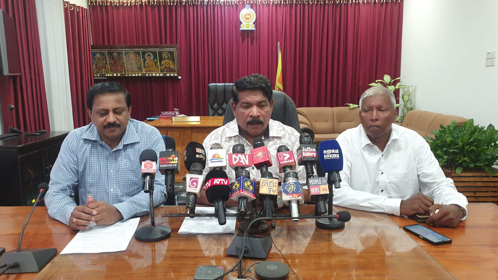 இதன்போது, தையிட்டி விகாரை விவகாரத்தில் நாக விகாரையின் முதன்மைப் பிக்குவின் தலையீடு குறித்துச் செய்தியாளர்கள் கேள்வி எழுப்பினர். அதற்கு விடையளித்த அமைச்சர், பௌத்த மதத்தில் பல்வேறு மகா சங்கங்கள் காணப்படுகின்றன. நாக விகாரையும் திஸ்ஸ விகாரையும் வௌ;வேறு பெரும் சங்கங்களின் கீழ் இயங்குகின்றன. அவர்களுக்குள் முரண்பாடுகள் இருக்கலாம், ஆனால் அவை குறித்துப் பேசுவதற்கு நாம் தயாராக இல்லை. மக்களின் காணிகளை அவர்களுக்குப் பெற்றுக்கொடுப்பதே எமது முதன்மை நோக்கமாகும்' என்று தெரிவித்தார்.